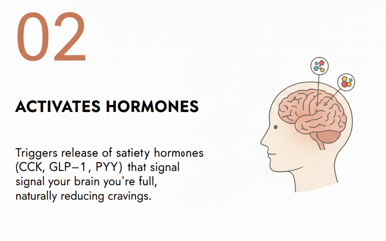 - Helps reduce hunger and cravings by promoting a feeling of fullness naturally